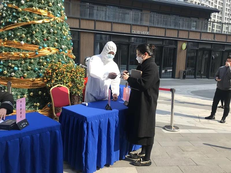 为保障客户和工作人员安全,各销售中心均实行严格的防疫措施,客户需佩戴口罩且提供近期行程轨迹后,方可进入看房。销售人员还会对客户测量体温,协助客户做好消毒防护工作。